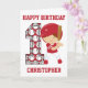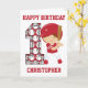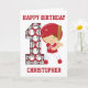 Perfect for the baseball fan who is celebrating his 1st Birthday, featuring an illustration of a batter in a red and white baseball uniform and cap. He is standing next to a large number one with baseballs inside it in a coordinating red colour. Customise the text on the front and the inside of the card to create a unique and personalised birthday card for the birthday boy. If you would like this design with a different number or colour combination, please contact us through our CelebrationBazaar store.