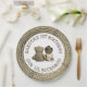 Cute personalised country and western little baby cowboy baby with a teddy bear and cowboy hat and boots birthday party paper plates.