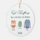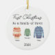 This personalised 1st christmas baubles plaid Ceramic Ornament is perfect for your little ones first Christmas! Ornament features three watercolor sweaters and First christmas as a family of three elegant typography.