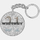 Personalised 21st birthday gift for 21 year olds is this silver bokeh look keychain- Bold, eye catching chrome 21 can't be missed. On faux silver sparkly bokeh background. With monogrammed name in black, all capital letters. Use on your 21st birthday to advertise that you are of legal age to drink beer and alcohol. Note: All images are printed. Double sides- identical on both sides. Fun birthday gift for a 21st birthday. Awesome sport team number gift as well for birthdays, Christmas gift, and any day.