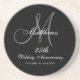 Personalised 25th Wedding Anniversary Coaster with monogram and name in white lettering on a black grey background. Monogram Logo Design by Elke Clarke ©2008. Customise with your last name, monogram and wedding date using the prompts or select "customise it" to have more editing options.