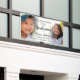 Elegant and modern script graduation banner personalised with a before and after photo of the person as a child on the left and a recent one as a graduate on the right. Use this welcome sign for a high school or college graduation party, or outside to congratulate them. To change the photo placement: click on the button to customise it further, click on "crop", and move the image.