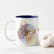 Design of this romantic mug is based on a real three-dimensional collage, so the image seems incredibly lively and voluminous. A bronze butterfly on a shimmering blue watercolor background makes this mug very noble and attractive. You can present it to a person you respect.
