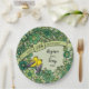 Here is a whimsical intricate floral themed 35th wedding anniversary paper plate that you can personalise for a special bride and groom! Two prothonotary warblers perch on a decorative floral pattern border made of flowers and artistic swirls in shades of green. The birds sit beside a space for two names and a wedding year in script text.