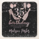 Personalised 35th Birthday Pink Black Glitter Square Paper Coaster