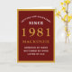 Personalised 40th Birthday 1981 Red Gold Chic Card