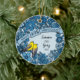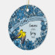 Here is a whimsical intricate floral themed 45th wedding anniversary ornament that you can personalise for a special bride and groom! Two prothonotary warblers perch on a decorative floral pattern border made of flowers and artistic swirls in shades of blue. The birds sit beside a space for two names and a wedding year in script text.
