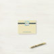 A graphic illustration of 4 christmas trees, tiled in a poster style. Retro colours - yellow. orange, blue and green. A dark blue banner behind the image. Cute and festive. The paper is a fancy parchment colour and you can personalise with your name at the bottom.