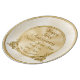 I was so very pleased with this anniversary plate! It is porcelain, so not as "shiny" looking as in the picture, but it is beautiful! Arrived in about a week, and I am very impressed with it! Everything was perfect!