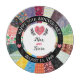 This personalised cutting board features a pretty border patterned to look like a stitched patchwork quilt and reads Happy 50th Anniversary around the rim. Customise it for a special bride and groom by including their names and wedding date in the centre. Pink hearts and a variety of colourful floral, dot and stripe patterns add a cosy country feel.