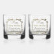 Beautiful custom personalised whisky glasses for 50th wedding anniversary, with heart design and names. Great gift idea for 50th wedding anniversary celebrations.
