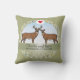 Celebrate the emerald wedding anniversary of your favourite nature loving couple with this customisable pillow! White branches and birds on a green background surround a pair of white-tailed deer who are each thinking of a heart. Two names, number of years together, wedding year and current year are featured near the centre and can be personalised. Perfect for a loving pair who love the outdoors too.