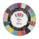 This personalised cutting board features a pretty border patterned to look like a stitched patchwork quilt and reads Happy 60th Anniversary around the rim. Customise it for a special bride and groom by including their names and wedding date in the centre. Pink hearts and a variety of colourful floral, dot and stripe patterns add a cosy country feel.
