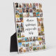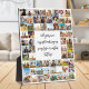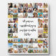 Create your own personalised photo plaque featuring 64 of your pictures alongside custom quote, song lyric or other text in elegant script calligraphy.