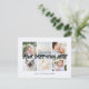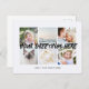 Personalised 6 family photos Universal Greetings cool Postcards featuring a stylish photo collage with 6 customised images, your greetings message in elegant handwritten script font, your name, date, year, message on the back in a modern and simple sans serif font.