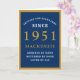 Personalised 70th Birthday 1951 Blue Gold Chic Card