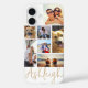 Create your own personalised custom colour cell phone case utilising this easy-to-upload photo collage template with 7 pictures in different sizes and shapes and your name in your choice of font style and colour and background colour (shown in an editable handwritten signature style font in gold on a white background). Make changes in EDIT. PHONE OPTIONS: The sample is shown on an iPhone 16 model with the Barely There case style--other models and case style are available on the ordering page. ASSISTANCE: For help with design modification or personalisation, colour change or resizing to fit another phone model, contact the designer BEFORE ORDERING via Zazzle Chat or email makeitaboutyoustore@gmail.com.