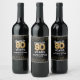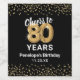Custom elegant eightieth birthday party wine bottle labels featuring a stylish black background that can be changed to any colour, gold sparkly glitter, eighty gold hellium balloons, and a modern text template that is easy to personalise.