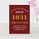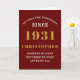 For those born in 1931 and celebrating their 90th birthday we have the ideal birthday greeting card. The red background with a white and gold design is simple and yet elegant. Easily customise the text to the front and the interior of this birthday card using the template provided. Part of the setting standards range of greeting cards.