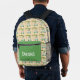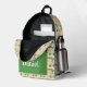 This fun personalised backpack, featuring a playful golf pattern with golf carts, golf shoes, golf clubs and balls and a golf putting green with bunker.