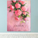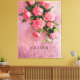 This appealing design, a digital painting, displays an antique representation of charming pink roses in a floral theme. It includes stylish, customisable text where you can insert a name, all set against a pastel pink backdrop.