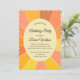 Personalised invitation for a birthday celebration, featuring an abstract sun design The text and its colour can be edited. We offer matching party supplies and stationery. This template can be used for other occasions as well.