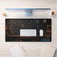 Bring the exotic beauty of this abstract wood panel, a chalkboard with colourful drawings from the mind of a ingenious artist into your workspace with this exquisite desk mat. Personalise it with a name printed on the lower right corner. This mat features a view of a crowded workbench of a busy inventor with a high-quality print from a high definition graphic. It provides a smooth and comfortable surface for your work for your laptop, keyboard and mouse. It will also transform your workbench with a stylish and elegant touch. Perfectly suited for all creators, artists, writers and anyone inspired.