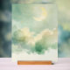 Create a serene nursery centerpiece with this custom acrylic sign featuring a glowing crescent moon, soft mint and cream clouds, and twinkling golden stars painted in delicate watercolor. Below the celestial scene, a Spotify QR code connects directly to a soothing baby lullaby playlist for peaceful naps and bedtime routines.