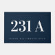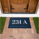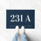 Personalised Address Number Modern Rich Coastal Navy Blue & White Doormat. Stylish modern design features customisable numbers and address text. Shown in white text on blue - all colours are customisable. Click the Customise It button and customise further to choose any background colour, change fonts, add your own text and even full colour photos to create a unique one of a kind design. We invite you to visit our Zazzle store, GJ Design Co, to view matching products and more.
