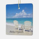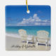 A beach scene with two Adirondack chairs in the sand with the ocean waves crashing up. Personalise by adding your names.
