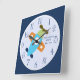 We were looking for a plane theme for a toddler room. Customized name was a plus. Nice color contrast of numbers, hands and background. Good quality. Good resolution. Good color contrast.