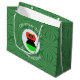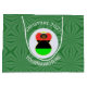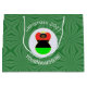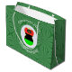 Large gift bag features an angel wearing the flag of the African Diaspora for holiday gift decorating or Christmas decor. The African American Flag Christmas angel is found inside a white circular fractal of squiggly squares. The background is a green fractal of squiggly squares. Add your own text or personalise with a name and the year. Might, also, make a nice Kwanzaa gift wrap.