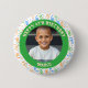 Birthday boy button. Happy Birthday to you, add name, age and photo to this personalised birthday button. Blue, orange, lime green and white background.