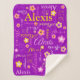Cute originally designed text name with short name personalised blanket. This bright purple, pink, white and yellow text typographical blanket can also be customised with your own short name, currently reads Alexis. Background colour can be changed if required currently purple. Other name lengths available or contact me for name requests. Ideal for travelling and to keep warm on winter evenings. © Original graphic art and design uniquely created by Sarah Trett for www.mylittleeden.com
