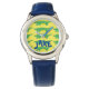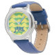 Watch features an original marker illustration of a green and yellow gator. Simply personalise with the recipient's name!