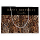 This stylish unique gift bag has a trendy safari animal print pattern in brown, black and beige. A black band runs along the top of the design which has a text template to personalise with your desired text. You can change the "Happy Birthday" text to any occasion. Personalise the name with any name or other desired. The recipient will feel special receiving a gift in this lovely bag that has their name on it.