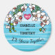 Did you get married, honeymoon, or live at the beach or on an island? Celebrate your wedding anniversary with this personalised seashore magnet! Beautiful blue ocean waves stretch to the clear sky coastal horizon behind a floral frame of tropical white orchids and palm leaves. The happy couple's names, wedding year and number of years together make this a one-of-a-kind gift for lovers of the sea.