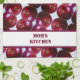 Personalised Apple Pattern design will let everyone know just who's kitchen this is. Customisable burgundy lettering is displayed against a white strip with a background apple pattern.