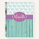 Aqua and lavender with a touch of salmon colour for pop! A sweet, girly design. Personalised with your name and initial.
