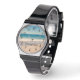 Personalised Aqua Beach Scene Photo Black Text Watch