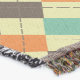 A quality printed throw has its advantages. This is a much finer weave throw than its loopier cousins, and though lighter, it is worth the investment for custom room accessorizing. The back is much prettier than the typical brown, and the fringe on the long sides very vivid, the selvage nicely done. Before photographing, I washed the throw in cold water, delicate, with a thicker woven throw the same size. On tumble dry low, this throw was dry in half the time as the other. This is a very practical quality if you use throws for furniture covers or to wrap up in frequently. The sleekness of the fabric makes it a great layer for accenting or protecting without the feeling of sitting on too much stuff. Perfect for napping or when you feel a light chill coming on. The color printing is beautiful and on this fabric, matched the design and color of my Photoshop image. This is an advantage for blending room fabrics and colors. The fringe on the short sides prints the colors from the design image and therefore varies from the side fringe. I streaked a white fractal line through the plaid pattern to give the illusion of weaving. This printed as crisp as an illusory thread, and put some white in the short side fringe, showing another advantage of print vs loomed- for artistic purposes, line lines, detail, and color integrity can be planned and preserved. My loomed throws have color limitations and more of a needlepoint texture. Print throws reproduce an exact image. The throw felt a little stiff straight out of the package, but this went away in the first delicate wash. Of course I searched the wash water for ink or bleeding and there was none.