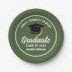 This army green custom graduation party paper plate features classy typography of your military academy, high school, or college name for the class of 2025. Customise with your graduating year under the chic white handwritten script and black grad cap for great personalised graduate decor.