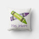 Decorative throw pillow features an original marker illustration of a pair of green and purple crayons. Simply personalise with the name of your favourite math teacher for a unique teacher appreciation gift!