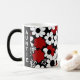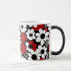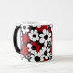 Red, black and white flowers whimsical tiled pattern personalised coffee mug. Add a family member or name in the personalise area.