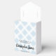Presentation really is everything. This adorable baptism favour box complete with a bow is designed with circle patterns, a faux gold cross and the added touch of personalisation for your baby boy's name and event date. The blue is soft and modern but you can easily change the background blue using the customisation tool.