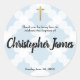This round sticker makes it easy to label those baptism gifts for honoured guests at your baby boy's event. The blue colour can be changed if needed and personalise the text using the Zazzle online tool. The faux gold cross adds a special touch to a blessed event.