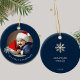 Celebrate your little prince's debut holiday with this Personalised Baby Boy's First Christmas Ornament. Designed for your unique touch, this ornament features a charming snowflake-framed space for a treasured photo of your baby boy. "My First Christmas" is elegantly displayed in sans-serif font below the photo, exuding warmth and joy. The reverse side continues the enchantment with a snowflake motif at the top, while you can add your baby boy's first and last name along with the date of the cherished event. Create a timeless keepsake that captures the essence of your baby boy's first holiday, and mark this special occasion with a truly personalised ornament that will be cherished for years to come.