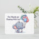Celebrate the joy of a new arrival with this adorable baby welcome card featuring a sweet baby elephant holding pastel balloons and surrounded by confetti dots. The message “Our Hearts Are Floating With Joy” sets the tone for a warm and heartfelt greeting, while the front is personalised with the baby’s name for an extra special touch. Perfect for baby showers, new parents, or welcoming a precious newborn, this whimsical card is sure to become a keepsake.