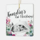 This is a lovely ornament, and great that you personalise the back with details of birthday, weight, etc.. My only tiny disappointment is the "My First" doesn't stand out very well on the background. More than happy with the printing of the photo and the writing on the back.