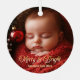Personalised baby photo Christmas ornament double sided template. Add your baby's photo to this cute personalised Christmas ornament. Change the names and date in the personalise area.